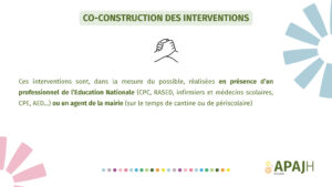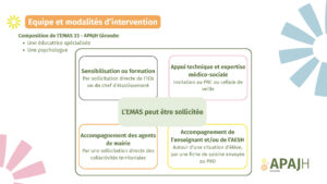 Les interventions sont issues d’un travail conjoint entre un professionnel de l’EMAS et un professionnel de la circonscription ou de l’établissement concerné.