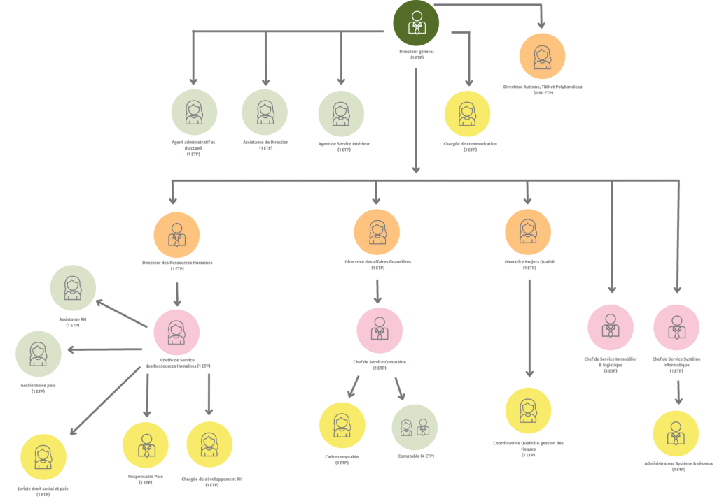 La Direction générale et les services du siège ont pour mission de mettre en œuvre la politique de l’association et ses orientations stratégiques, qui assurent la promotion d’une société inclusive.